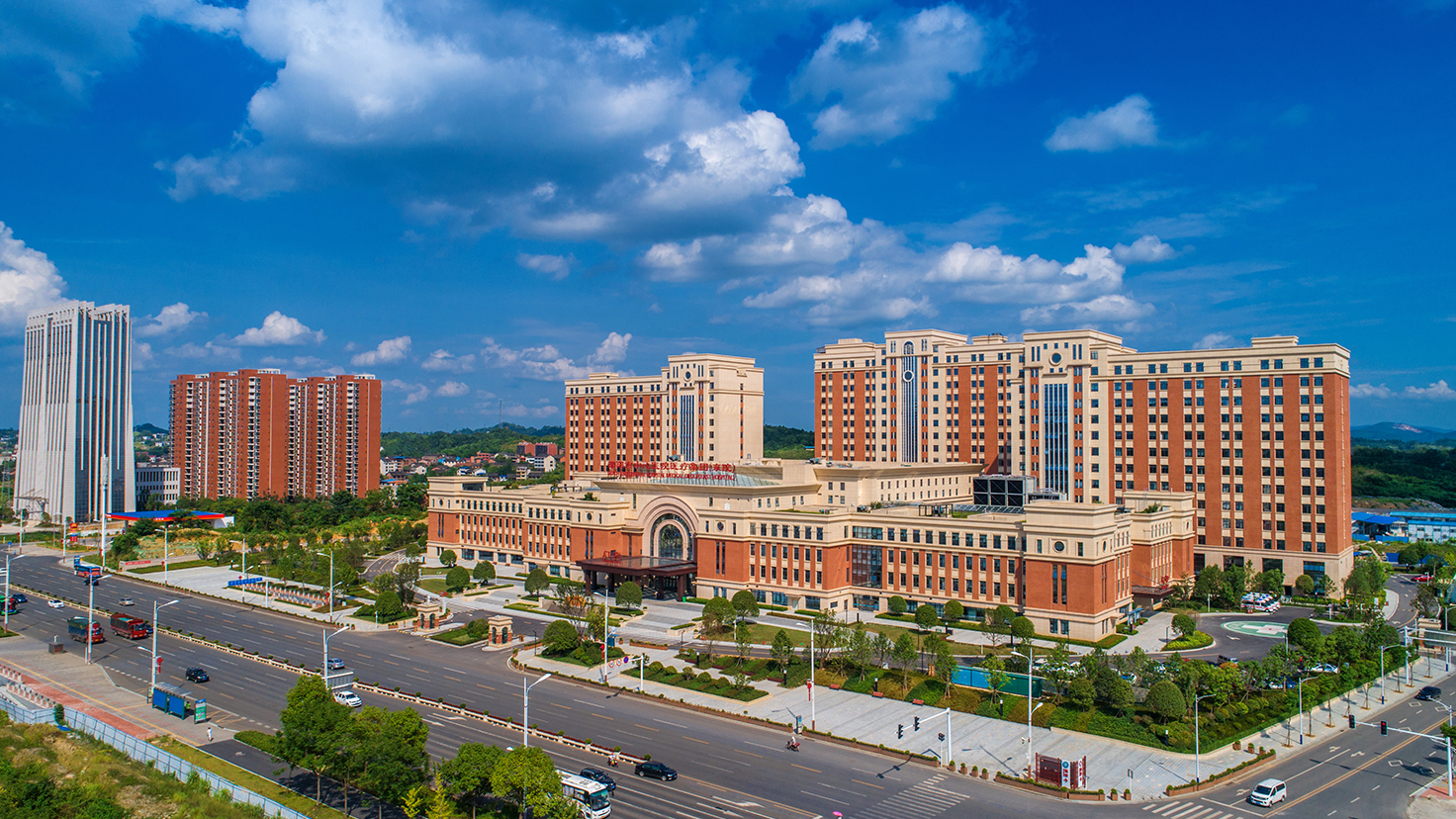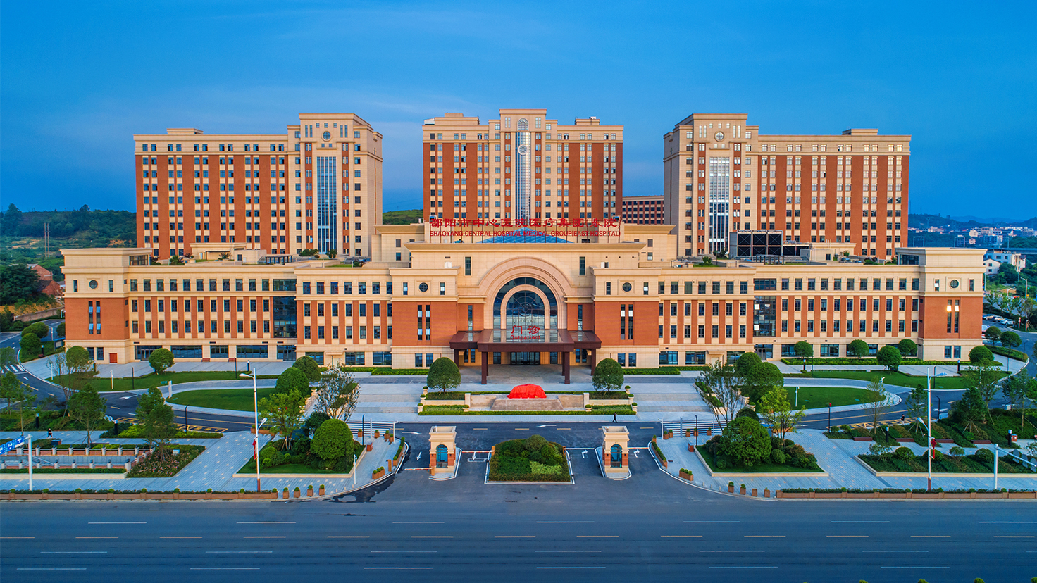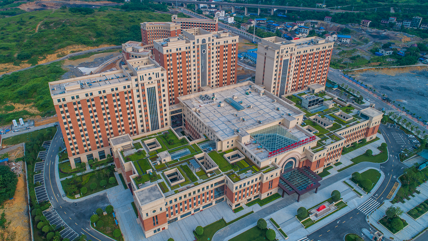 項(xiàng)目規(guī)模:院區(qū)總用地約18.7公頃,其中一期用地約9.3公頃,一期建筑面積約17.3萬平方米,共設(shè)有1627張病床。