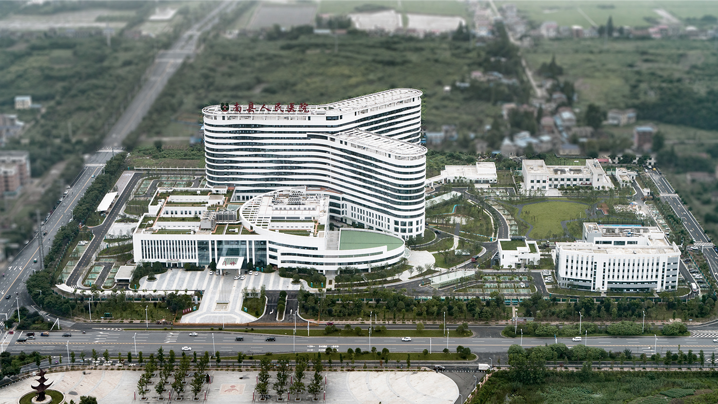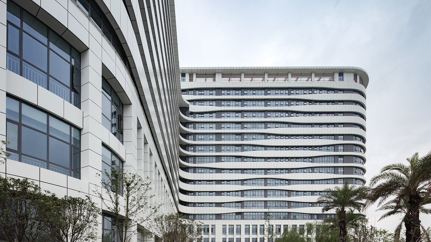 設(shè)計背景:花園中的醫(yī)院,將醫(yī)院至于花園之中,是我們對這個新建的醫(yī)院整體環(huán)境的期待。我們將醫(yī)院的主體建筑放置在地塊相對中間的位置,綠化、廣場圍繞著主體建筑,希望我們的病人到達醫(yī)院門口,走進門診大廳或者住院大廳的過程中,感受優(yōu)美的、安靜的環(huán)境,心情愉悅起來。特別是住院病樓,遠離地塊的邊界,希望他們在病房中有開敞的視線,安靜的環(huán)境,不受制于南邊地塊的以后的建設(shè)的干擾。 根據(jù)醫(yī)院的使用要求,我們住院部分是由一棟15層的兩個護理單元的普通住院大樓和一棟12層的康復(fù)樓組成。我們都希望這兩棟大樓直接與醫(yī)療主街相連,便捷地共享醫(yī)技。經(jīng)過多方案比較,我們發(fā)現(xiàn)“Y”字形布局,將這兩棟樓合成一個整體非常契合我們定下的“花園中的醫(yī)院”的想法。