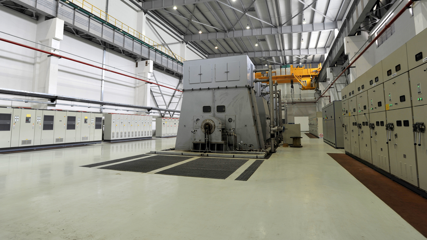 1800MW級汽輪發(fā)電機(jī)系統(tǒng)是目前國內(nèi)規(guī)模最大的汽輪發(fā)電機(jī)試驗站,也是世界上目前最大的汽輪發(fā)電機(jī)試驗站之一。試驗檢測能力及技術(shù)水平達(dá)到國際先進(jìn)水平。該試驗站由中機(jī)國際承擔(dān)設(shè)計、項目管理、關(guān)鍵設(shè)備供貨及調(diào)試。