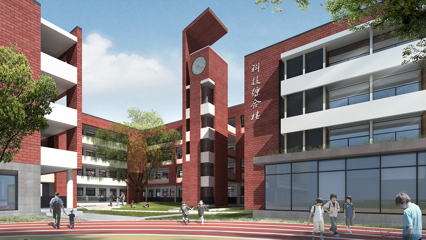設(shè)計(jì)背景:學(xué)校既是學(xué)生接受教育并進(jìn)行信息專(zhuān)遞的理性空間,也是學(xué)生相互之間進(jìn)行情感交流的感性場(chǎng)所。因此,我們提出理性與感性相結(jié)合的設(shè)計(jì)理念,利用傳統(tǒng)的四方院落布局與入口的開(kāi)闊廣場(chǎng)塑造一個(gè)理性、包容的教學(xué)空間。 由于學(xué)校各建筑功能的豐富性以及獨(dú)特性,我們將建筑進(jìn)行人為的動(dòng)靜分區(qū)以保證其良好的教學(xué)秩序,但是各功能區(qū)通過(guò)連廊相連接,圍合成多變的組團(tuán)空間,不同尺度的內(nèi)庭院相串聯(lián),營(yíng)造出安靜、舒適的教學(xué)與活動(dòng)環(huán)境。