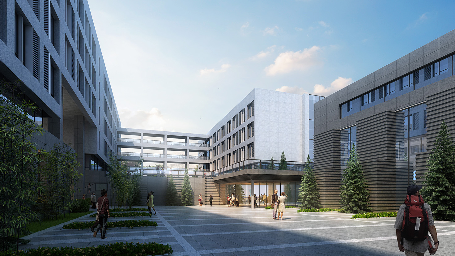 設計背景:我們采用地形同構的手法來雕琢地信樓的形體和空間,深灰色的莊勝礦業(yè)研究院與架空平臺一起組合成了一個大的基座,借助二層玻璃體塊的過度,兩個紅色的盒子從基座上悠然生長開來,內(nèi)部豐富的空間借助統(tǒng)一的基座整合到了一起,使得建筑的形體豐富又不失完整。剛毅的外表,柔軟的內(nèi)在,恒久的色彩和肌理,這便是我們心中地信學子的校園。